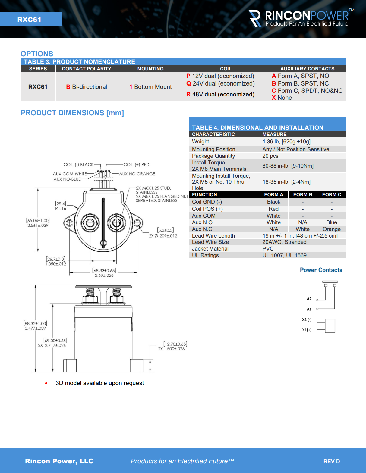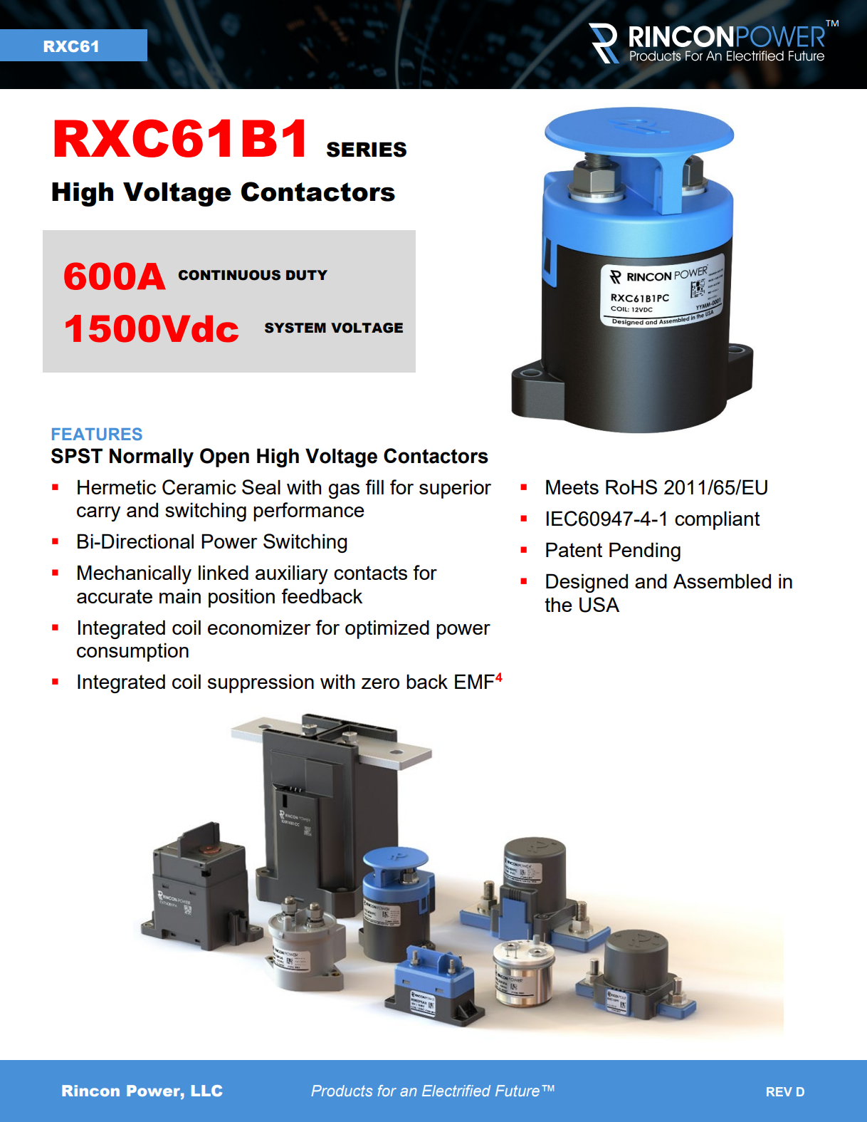 加利福尼亚州卡平特里亚——Rincon Power自豪地宣布推出RXC61,这是其行业领先的接触器产品线的又一升级产品。