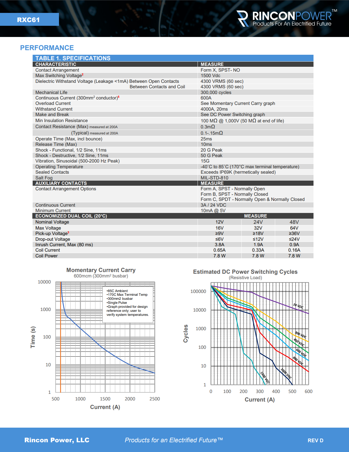 • 美国RINCON POWER高压直流接触器,RXC61B9PX